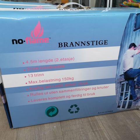 Robust brannstige som passer de fleste toetasjers hus. Tåler høy belastning og krever ikke fast montering. Kan oppbevares i et skap eller under sengen og tas frem ved behov.
