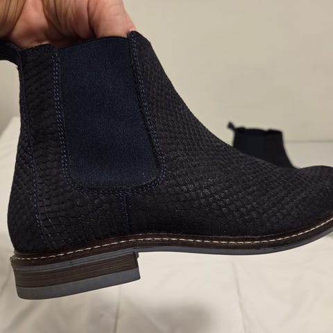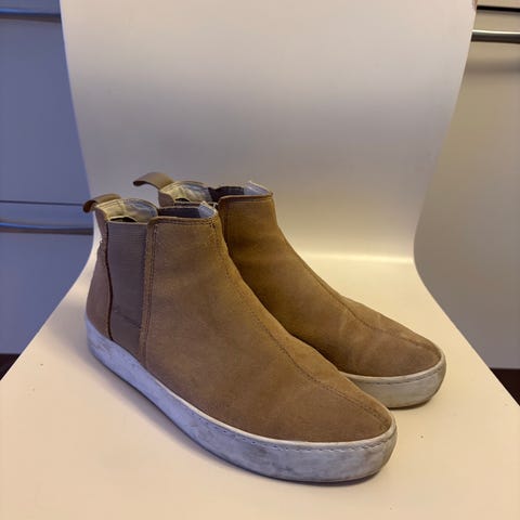 Ubetydelig brukte Toms skoletter i semsket grønt skinn.
