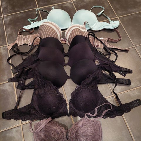 Kun prøvd på. Fire stk bh-er med blonder/div detaljer selges samlet. Evt gi bud. Er kjøpt på Cubus/H&M.