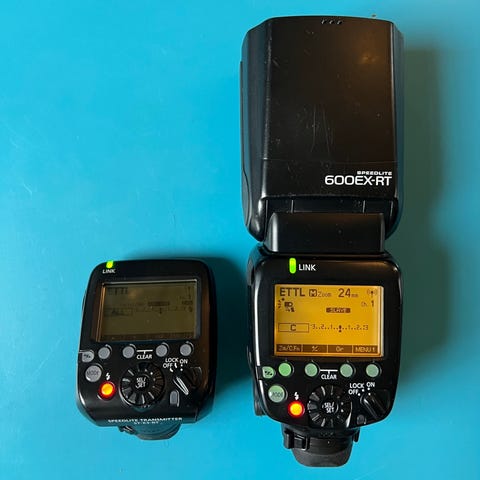 4stk 600 EX-RT +Speedlite transmitter ST-E3-RT med 2stk Propac PB 960 batteri pakke +2stk Lastolite EzyBox speed lite og 2stk stativ + Seconic L-308S lysmåler.