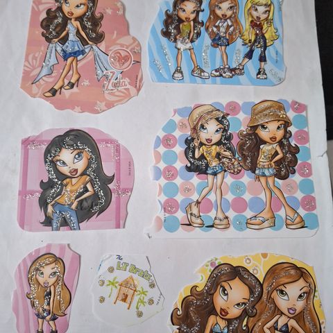 7 stk Gamle engelske Mlp Bratz glansbilder m glitter selges for 29 kr pluss porto. Gule baksider, noen m små feil Har vipps og PayPal og jeg samsender.