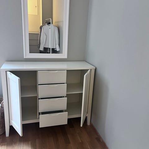 Kommode, speil og knaggrekke. Alt kjøpt på Bohus I heltre.