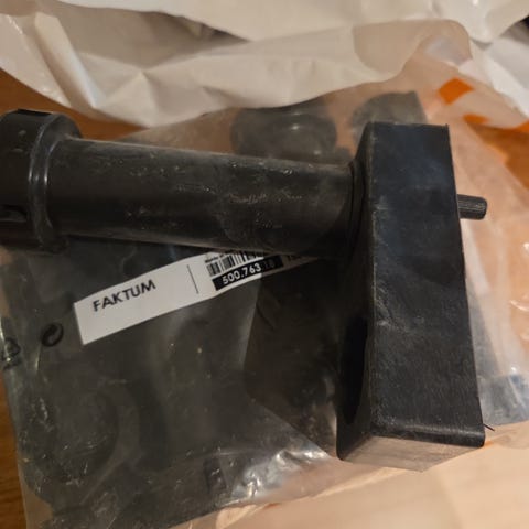 Har både ben og de flate "føttene" som følger med skapet originalt. Det følger også med to ben som kan brukes til å koble sammen to skap hvis man vil lage tv-benk/skjenk.
