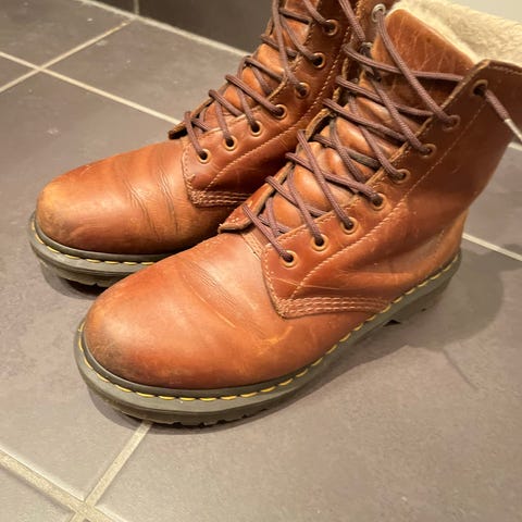 Solide sko. Læret er i god stand. Litt slitt for på innsiden og sålen er litt slitt.