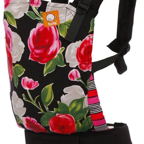 Tula bæresele (standard modell) med nydelig print. Kjøpt ny, og kun brukt til 1 barn. Men knapt brukt, da jeg kjøpte den litt sent i baby-perioden (var misfornøyd med forrige). Supermyk og god å ha på, og den beste bæreselen jeg har prøvd. Funker også godt å ta av og ha festet kun rundt livet under korte flyturer mens barnet sitter på fanget, ettersom den ikke er så stiv som mange andre typer kan være. Følger med en liten hette til perioden der barnet ikke klarer holde nakken/hodet oppe selv. Den ble aldri brukt her, ettersom jeg kjøpte selen etter baby hadde kontroll på hodet selv. Bruksanvisning følger også med.