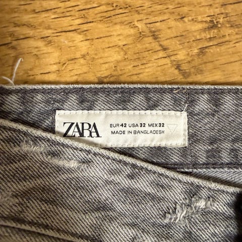 Denimbukse fra Zara i str 38. Lite brukt. Fremstår som pen. Fargen er greige. En blanding av beige og grå. Selges da den er for liten for sønnen.