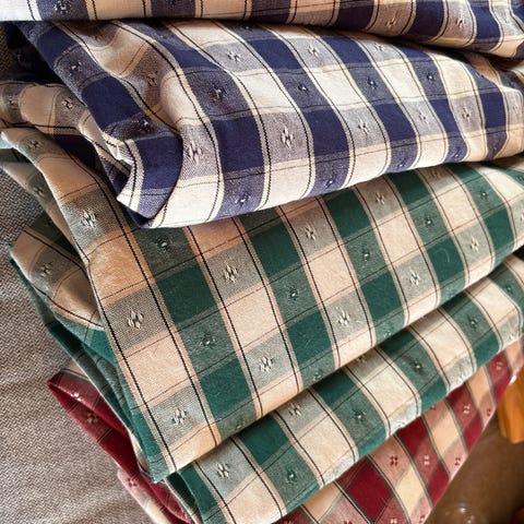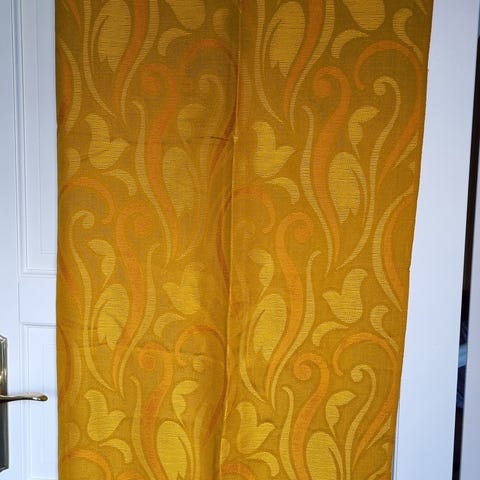 Vintage gardiner, 3 lengder. 110cm bred og 165cm lang. Brukt i stue med klipsoppheng.