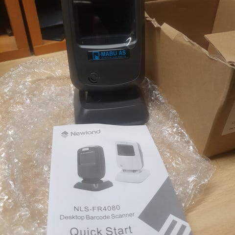 Vi fikk med denne skanneren da vi gikk over til nytt kassesystem, men vi har ikke bruk for den.