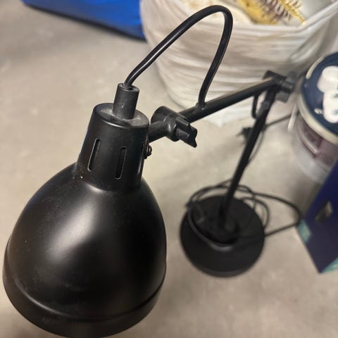 Selger en fin sort svart lampe bordlampe fra Kalma. Sort svart fot. Skjerm i grått fra IKEA kan medfølge. Nb! Denne har løsnet i limingen, og kan eventuelt limes eller byttes. Med lyspære. Ca 54cm fra bunn til topp av skjerm. Passer i mange hjem. Reserverer kun ved betaling, og sender på kjøpers risiko og regning. Lampe. Nattbordslampe. Vindus belysning. Vinduslampe.