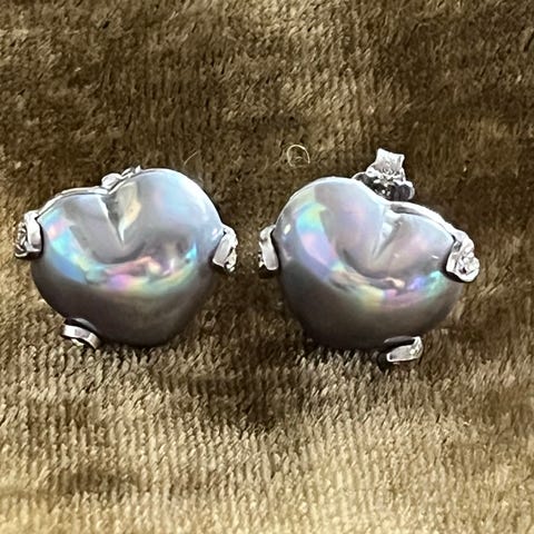 Ørering laget av ekte barokke ferskvannsperler. Selve kroppen er laget av metall, og spiken er i 925 sølv.
