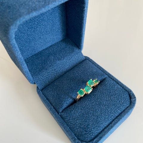 Øredobber med smaragd- og moissanittsteiner. Smaragden kommer fra muzo-gruven i Colombia.