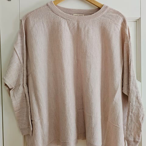 Romslig, myk og varm kosegenser fra Alpaca society. Genseren er pent brukt men har noe nupper. Nydelig rosafarge som ikke kommer godt nok frem på bildene. 100% alpakka.