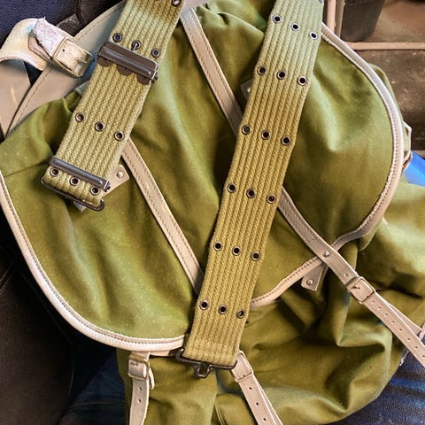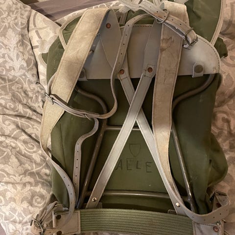 Forsvarets solide ryggsekk for feltbruk (Ludviksekken) produsert mellom 1953 og frem til 1990-tallet. (Brukt i aktiv tjeneste inntil senere år i HV)