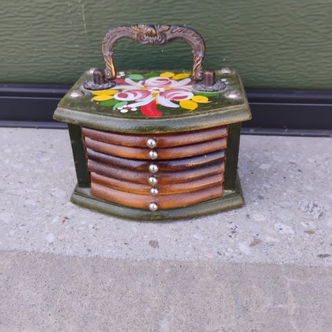 Vakkert skrin med rosemalt lokk