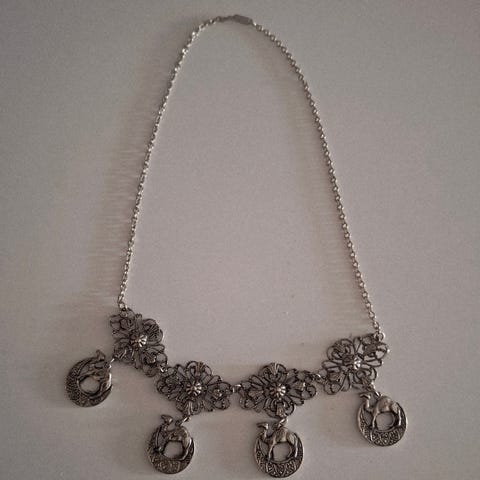 Vakkert halskjede i 830 Sølv med flere anheng - Filigransarbeid.