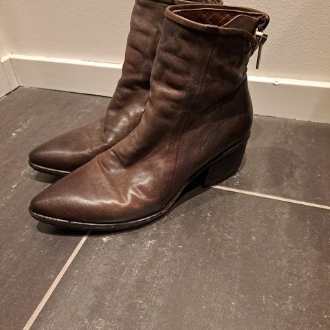 Kjøpt på Lille vinkelsko. Italiensk håndverk. Som nye. Str 40. Jeg har satt på såler, da det kun var lærsåler i utgangspunktet. Som nye. Bootsene er brune. Alexander Hotto er nydelig, italiensk håndverk.