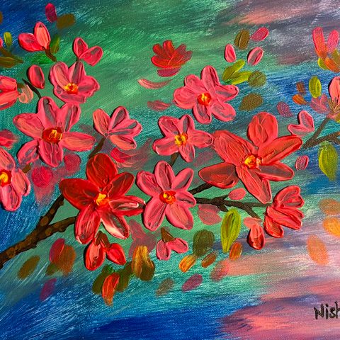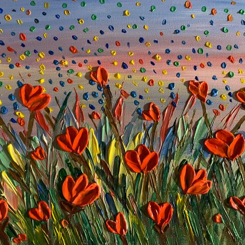 - Teksturert akryl med lyse farger på lerret - laget med pensel/palettkniv