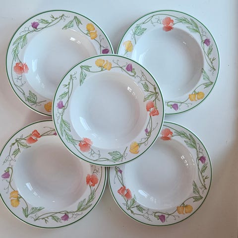 Selger et stort serveringsfat fra Figgjo Flint med blå blomster dekor (se bilder!). Diameter 31 cm, høyde 4,5 cm. Uten nag eller skår og ingen krakkelering. Noen svake bruksspor i bunn. Sannsynlig fra 1950-1960 tall. I følge Jærmuseet (digitalmuseeum.no) er Ragnar Grimsrud formgiver og dekor sannsynligvis av Rolf Frøyland.
