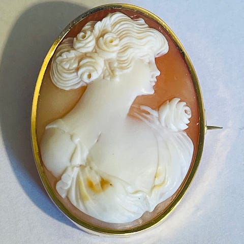 Vintage brosje/ anheng kame i gull stemplet 585