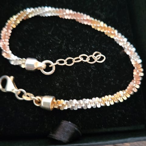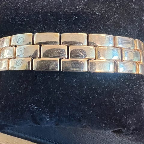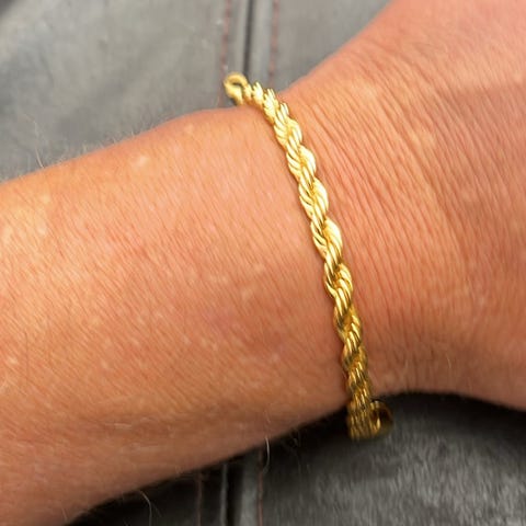 Delikat og feminint armbånd med bokstav i gull/gullforgylt. Lenken er i stål. Kjøpt hos gullsmed i Frankrike. Ubrukt og venter på eier.