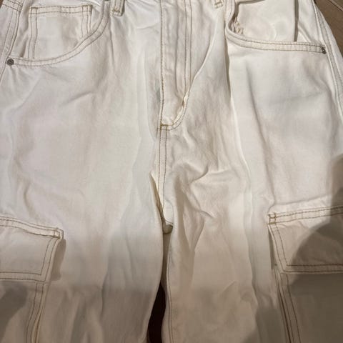 Stretchy, myke, straight-leg jeans fra Cotton:on, rette ben, kommer med hull på knærne. Gode og kule jeans. Passer en str S til M.