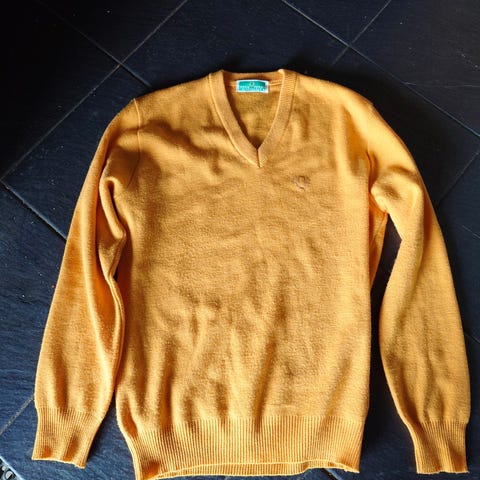 Fin genser som er meget pent brukt. Small, men litt romslig, så den kan også passe en liten medium (f.eks. om du er rundt 180/70 kg).