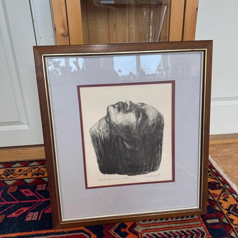 Eva Lange. Dragsug. Stort og flott litografi. Innrammet.