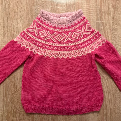 Nydelig strikket genser i ull. Størrelse ca. 2 år.