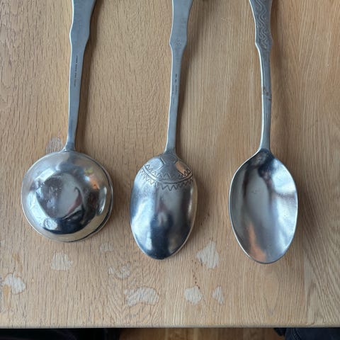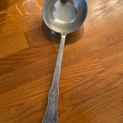 Flott tinn serverings skje fra Askvoll Brug, 35 cm lang