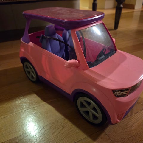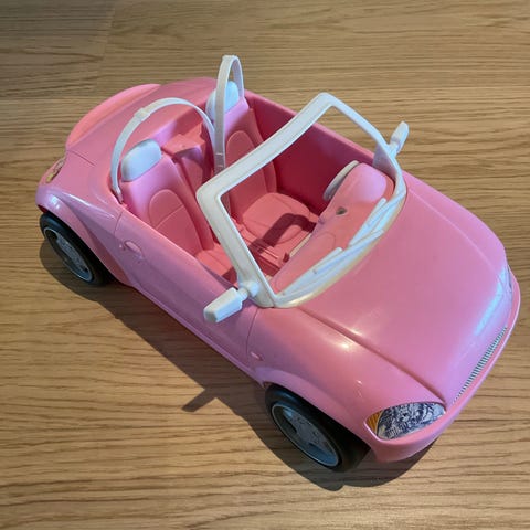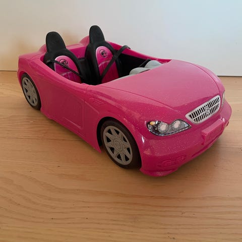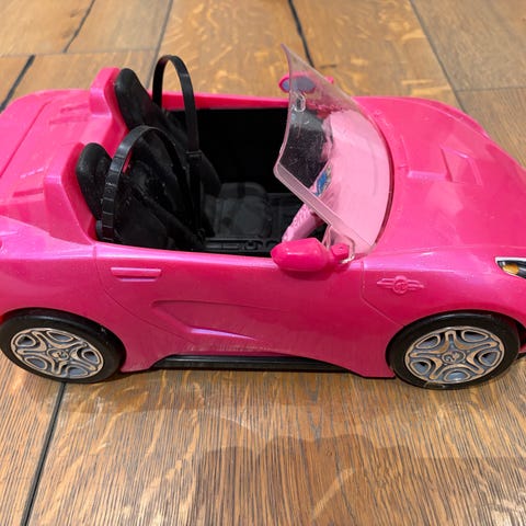 Rosa Barbie bil. Nesten ikke brukt. En liten sprekk i frontruten.