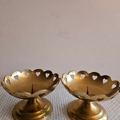 søkeord: dekor dekorasjon interiør lysestaker lysholdere telysholder gullfarget blank i messing telys te telys- holder telysestake telysestaker rundt rund vintage gammeldags gammel retro stjerner stjerne mønster mønstret