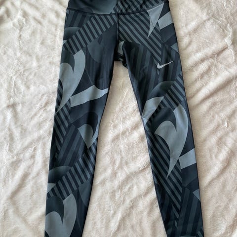 Ny training tights fra Nike, mørkeblå. Dri Fit. Str XS Nike power fabrics. Med mønster på sider. Total ca 90 cm i lengde og 71 cm inseam. kr 350