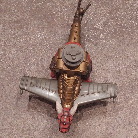 Figuren er ca 12 cm høy, og kan enten brukes i kista som pop-up når du åpner lokket, eller tas ut og lekes med, eller settes på utstilling i hylla. Kista er ca 21 cm lang.