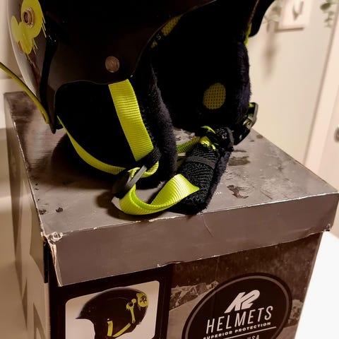 Godt isolert Smith-hjelm med øreklaffer. Selges med Cebe-skibriller inkludert.