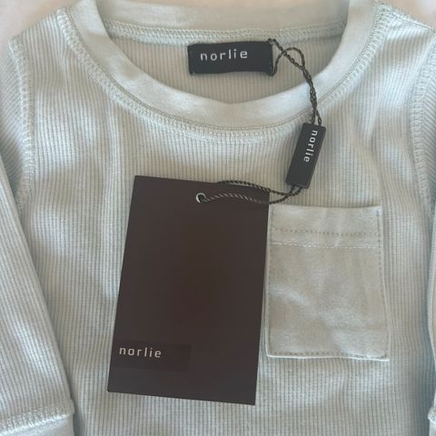 Nydelig genser fra Norlie i str. 6-12 mnd. Hvit ribbet i nydelig kvalitet. 95% bomull og 5% elastan.