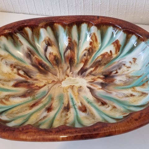 Keramikkfat selges for 150 kroner (høyde 6 cm / diameter 29,5 cm). K13. Fraktkostnader: PostNord - 69 kroner. Betaling via vipps.