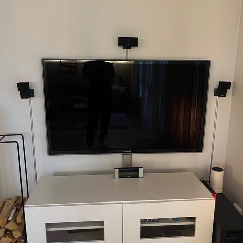 5x høytalere med 4x stativ + basskasse og mediasenter.