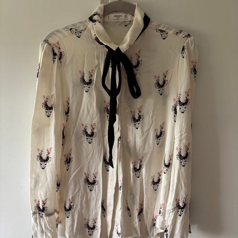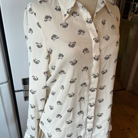 Svært pent brukt skjorte fra Zara med søte fugler på. Uten merknader. Fin mørk blå detalj inni krage og mansjetter (se bilder).