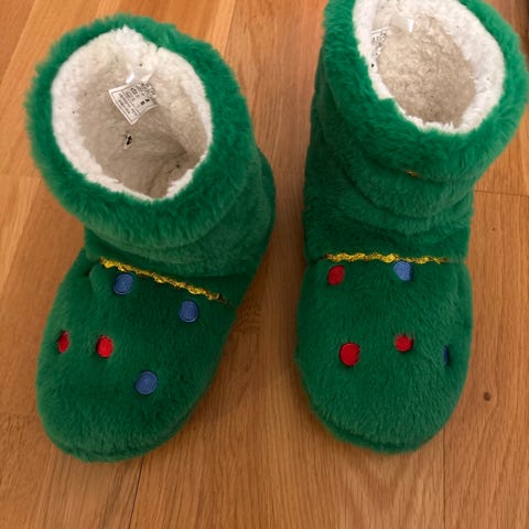 Fine røde tøfler / juletøfler med antiskli selges.