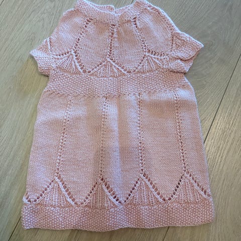 Unik vakker kjole i kvalitetsgarn kløfri ull til babier. Str. 1-3 år