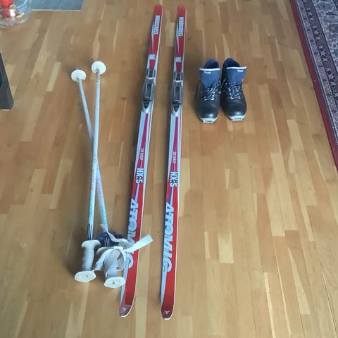 Pent brukt smørefri ski med enkel junior rottefella binding