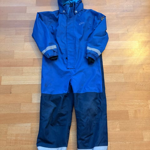 * Grønn regnbukse, str 86. Regnbukse med justerbare bukseseler. Ett lite hull på det ene kneet som ikke er prøvd reparert. Selges for 20kr.