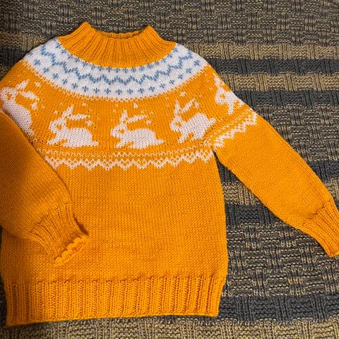 Nydelig strikket påskegenser til barn str 2-3 år.