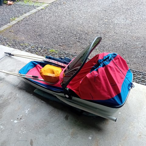 Pent brukt og komplett pakke Fjellpulken Barnepulk. Kjøpt i 2014. Pakken inneholder alt du trenger for å dra på tur; standard drag, seler, transporttrekk, barnepose og selesekk.