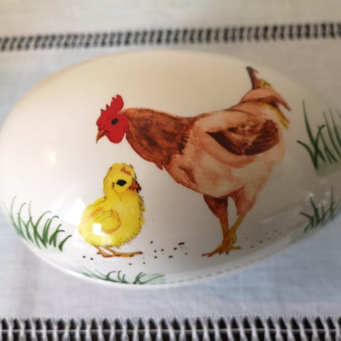 Krukke for Påske med hare, bredde 20 cm, høyde 20 cm, dybde 13 cm, god stand, ingen skader.