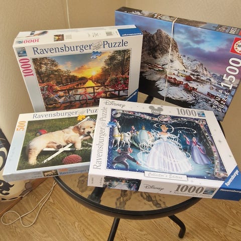 Selger diverse puslespill 50kr per stykk