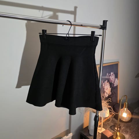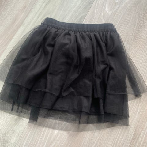 Svart, tynt sommerskjørt med hvite blomster. Pent brukt, mye bruk igjen. Glidelås i siden.