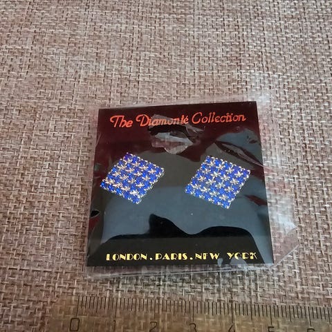 Øredobber laget av Polyster med krystaller, nikkelfrie, 6,5 cm lange. Helt nye