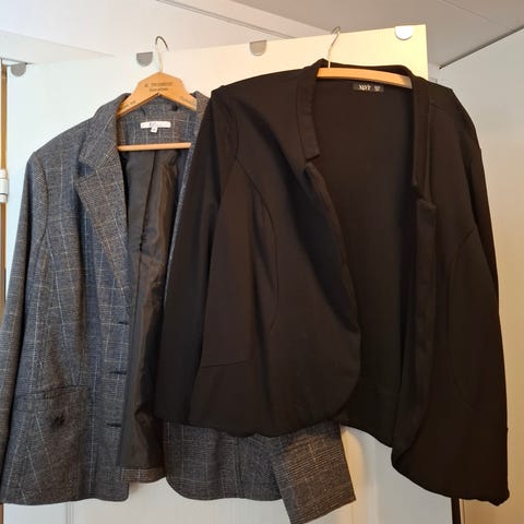 Selger pent brukt Leszan blazer (Charlotte Eskilden) og ullkjole fra Designer Remix.