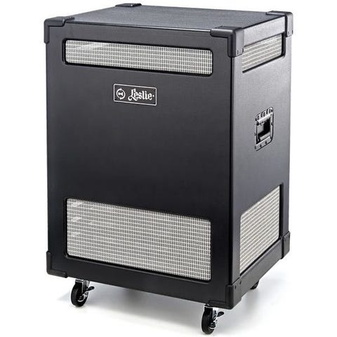 Meget transportvennlig Leslie med hjul, håndtak (som ikke klirrer) og 2 stk innebygde Shure A98D med kobling på selve leslien (bilde nr.6)